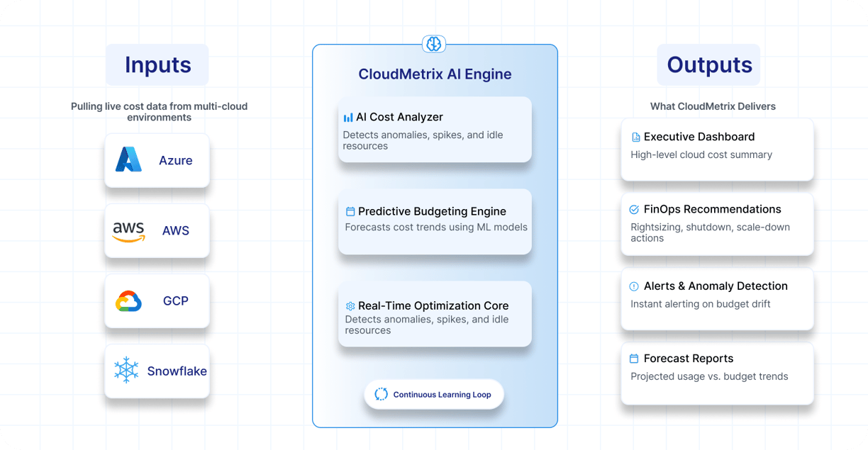 Our AI-powered FinOps platform makes cloud cost management automatic, intelligent, and continuous—predicting usage, preventing overspend, and driving smarter decisions from day one.