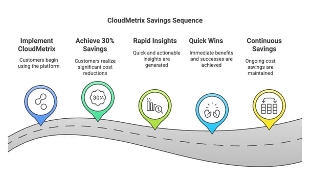 Customers achieve 30% savings within the first 60 days with CloudMetrix. Our platform delivers rapid insights, quick wins, and continuous savings you can measure.